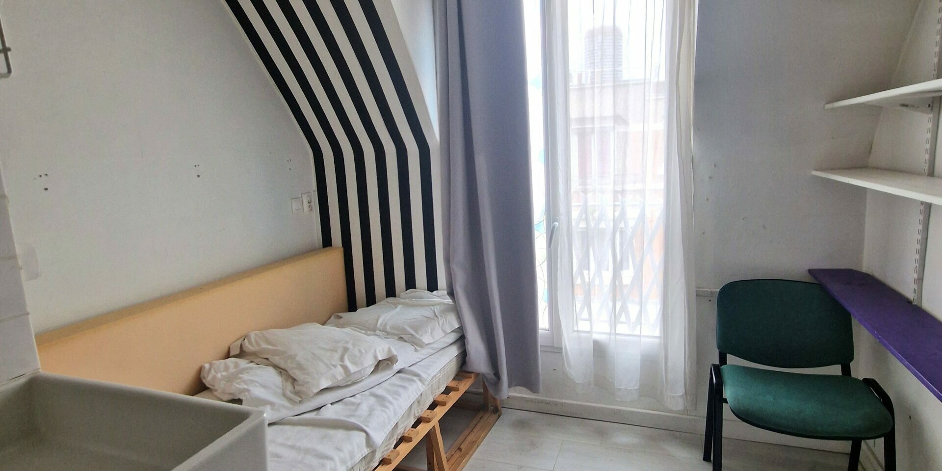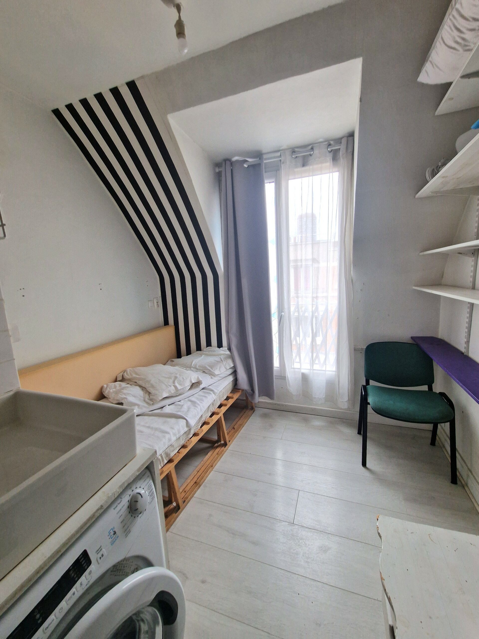 Une chambre de bonne composée d’une pièce principale avec douche, lavabo/évier, d’un espace nuit et d’un espace de cuisson, jouissant d’un droit au poste d’eau et au Water-Closets se trouvant sur le palier. Vendue louée (bail code civil – Résidence secondaire)